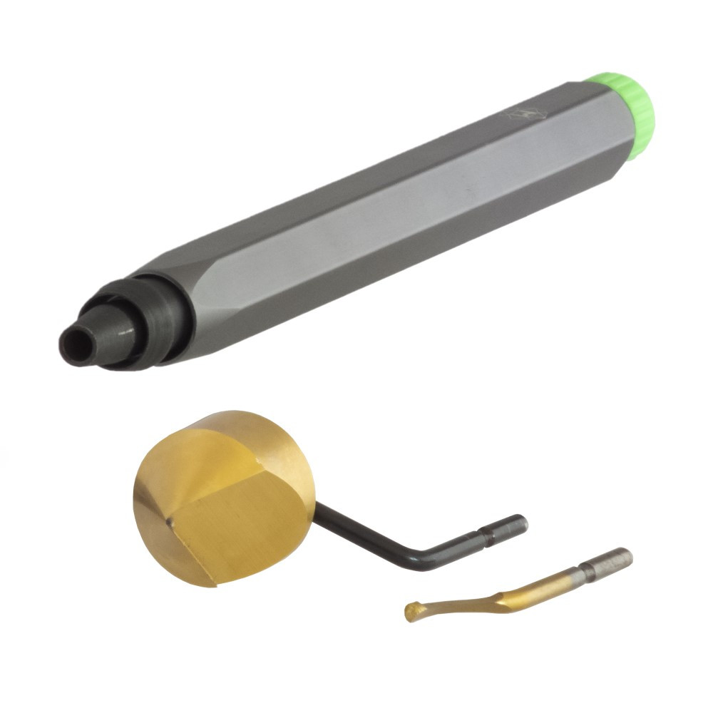 High-quality, titanium-coated deburring tool, which has two different types of deburring edges.